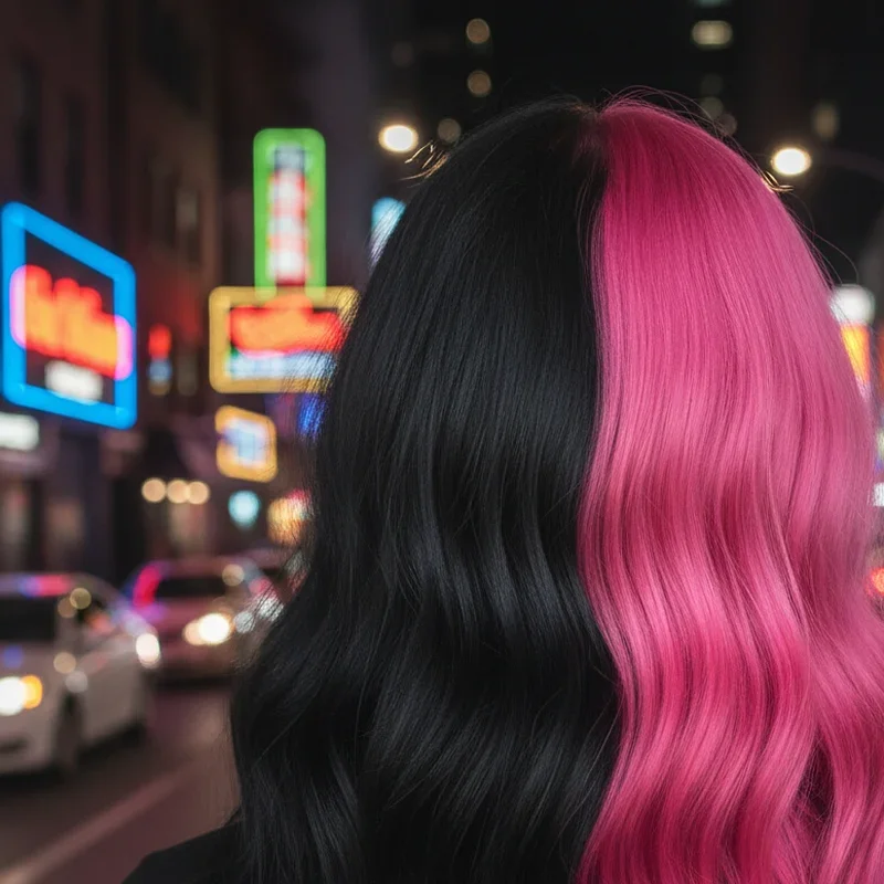Nothing screams confidence quite like a perfectly executed split-dye hairstyle where one half of your head rocks jet black while the other blazes in pink glory. This daring look has taken social media by storm, becoming the go-to choice for influencers and artists who refuse to blend into the crowd. The sharp contrast creates an almost optical illusion that turns heads wherever you go, making it impossible for anyone to forget your unique style. You might think maintaining such a bold look would be complicated, but with the right products and technique, it's surprisingly manageable. The key is finding a skilled colorist who understands how to create that perfect straight line down the middle while ensuring both colors remain vibrant. This style works beautifully with both long and short hair, though bob-length cuts tend to emphasize the dramatic effect even more.