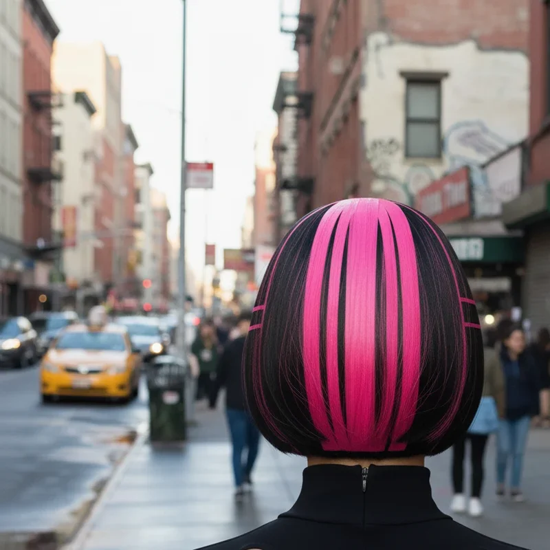 Remember those bold chunky highlights from the early 2000s? They're back with a vengeance, but this time in stunning pink against black hair. These thick sections of color create a graphic, almost comic book-like effect that's both nostalgic and thoroughly modern. Unlike subtle highlights that blend seamlessly, chunky streaks make a deliberate statement, showing the world you're not afraid to take risks with your style. The placement of these streaks can completely change the vibe; front sections create a punk rock feel, while scattered placement gives off more of a fun, playful energy. This technique works best on straight or slightly wavy hair where the color blocks remain distinct and defined. You can even play with different shades of pink within the chunks, creating an ombre effect within each streak for added dimension.