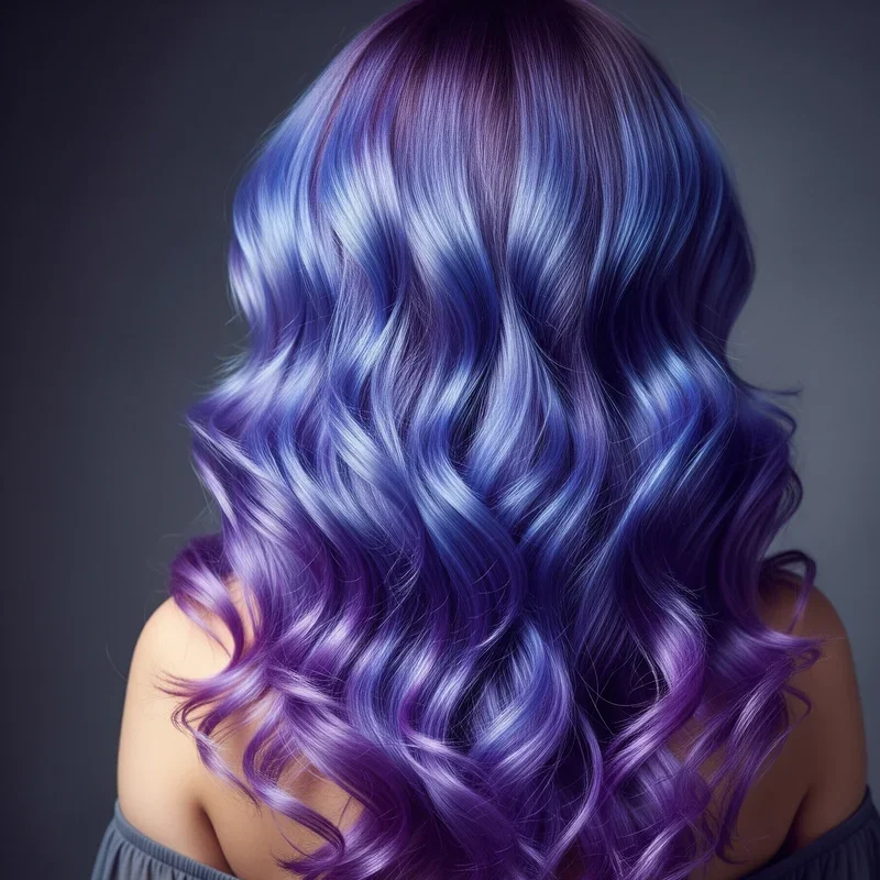 Dive into an underwater fantasy with mermaid-inspired hair that seamlessly blends oceanic blues with mystical purples. This style mimics the iridescent scales of mythical sea creatures, creating a fluid, ever-changing color story that flows through your hair like waves. Colorists achieve this look by using multiple shades of blue and purple, often incorporating teals and aquamarines for added dimension and movement throughout the hair. The key is creating smooth transitions between colors without harsh lines, allowing each shade to melt into the next naturally. This style particularly suits those with naturally wavy or curly hair textures where the colors can play off each other with every bounce and turn. Beach waves or mermaid waves styling techniques enhance the oceanic vibe, making you look like you just emerged from an enchanted lagoon.