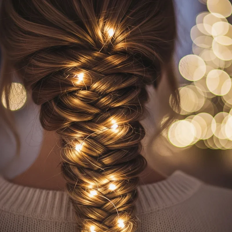 10. Fishtail Braid with Fairy Lights