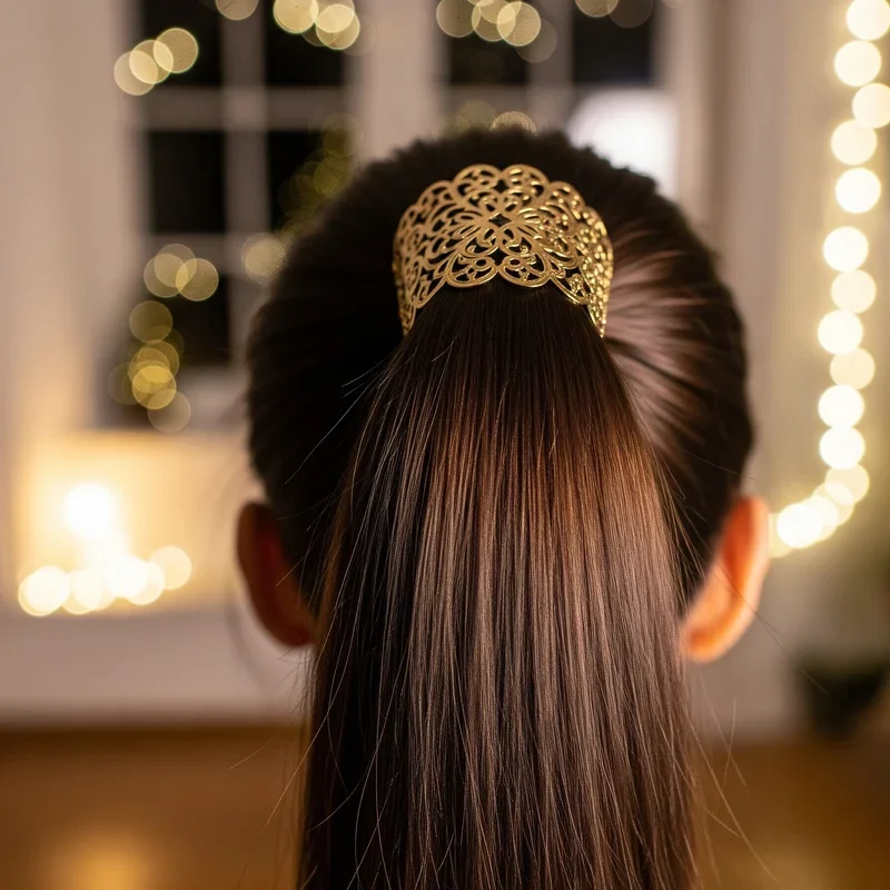 Make a bold statement at your next holiday party with this modern, sleek high ponytail that gets a festive upgrade through metallic hair wrapping. Pull your hair into a super high ponytail, ensuring everything is smooth and bump-free by using a fine-tooth comb and some smoothing serum for that glass-like finish. Take a metallic cord or ribbon in gold, silver, or rose gold and wrap it around the ponytail base, then continue wrapping down the length of the ponytail in a spiral pattern. This contemporary style screams confidence and works especially well for those who prefer minimalist fashion but still want to acknowledge the season's festivities. The metallic element catches light beautifully on the dance floor, making this perfect for New Year's Eve celebrations or modern Christmas parties. Your hair becomes a piece of art that moves with you, creating an almost hypnotic effect that's sure to turn heads.