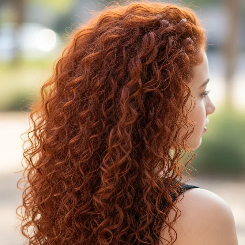 Ready to turn heads wherever you go? Vibrant copper red on curly hair creates an absolutely mesmerizing effect that commands attention in the best way possible. This fiery shade brings out the natural movement in your curls, making each spiral look like dancing flames. The metallic undertones in copper catch light beautifully, creating an almost three-dimensional effect that straight hair simply cannot achieve. Whether you choose a bright penny copper or a deeper auburn-copper blend, this color screams confidence and creativity. Your curls will look like autumn leaves kissed by sunset, rich and warm and absolutely unforgettable. The key to maintaining this stunning shade involves color-protecting products and regular glossing treatments, but trust me, the compliments you'll receive make every effort worthwhile.