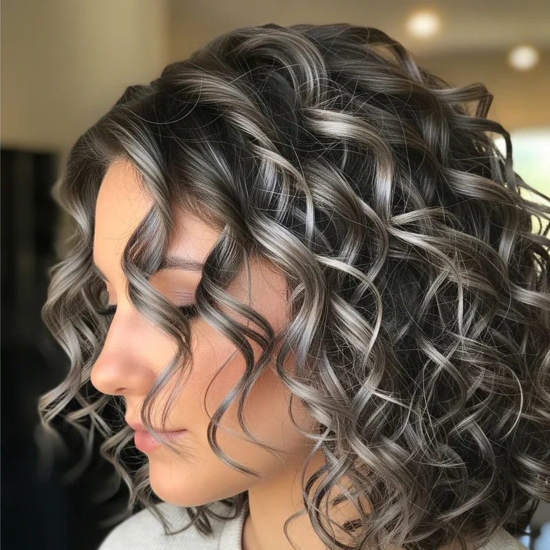Ash brown with silver highlights creates the perfect balance between edgy and elegant, giving your curls a modern, sophisticated appearance. This cool-toned combination eliminates any brassiness while adding metallic dimension that makes your curl pattern pop. The silver pieces act like moonlight threading through your hair, creating an almost mystical effect that changes with movement. This color combination works particularly well for those wanting to embrace their natural grays stylishly or anyone drawn to cooler tones. The ash base keeps things grounded while the silver adds that touch of drama everyone secretly wants. Your curls will look like they've been kissed by frost, creating beautiful contrast and depth. This low-key luxury look requires purple shampoo to maintain its cool tones but delivers high-impact results.