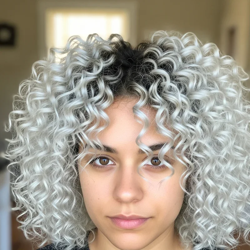 Smoky gray silver transforms curly hair into a sophisticated statement that proves gray isn't just for aging gracefully anymore. This intentional silver shade creates an ultra-modern look that combines edge with elegance, making your curls look like spun sterling silver. The multitonal nature of this color works perfectly with curl patterns, creating depth and movement that appears almost metallic. Achieving this look requires patience and expertise, especially for darker starting shades, but the results justify every minute spent in the salon chair. Your curls become these beautiful silver streams that catch and reflect light in the most flattering ways. This color suits various skin tones but particularly pops against darker complexions, creating stunning contrast. Purple shampoo becomes your best friend for maintaining this cool-toned masterpiece and preventing any unwanted yellow tones from appearing.