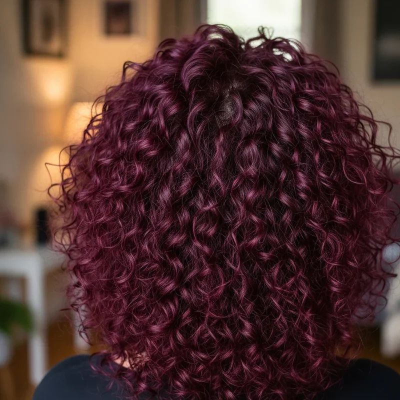 Deep burgundy transforms curly hair into luxurious wine-colored waves that ooze sophistication and mystery. This rich shade combines the depth of purple with the warmth of red, creating a color that's both dramatic and wearable for everyday life. When light hits your burgundy curls, they reveal hidden purple and red undertones that make your hair look expensive and meticulously styled. This color works exceptionally well on darker base colors, requiring less processing while still delivering maximum impact. The wine tones complement both cool and warm skin tones, making it surprisingly universal despite its boldness. Your curls will look like they've been soaked in the finest Bordeaux, rich and intoxicating. This shade fades beautifully too, transitioning through various berry tones as it oxidizes.