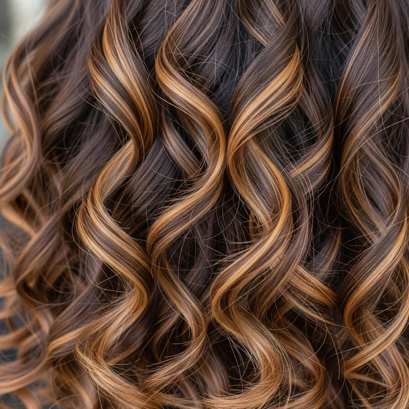 Who says brunettes don't have more fun? Rich chocolate brown enhanced with caramel ribbons creates the most delicious-looking curls you've ever seen. This combination works like a dessert for your hair, mixing deep cocoa tones with sweet caramel highlights that weave through each curl pattern. The contrast isn't stark but rather flows seamlessly, giving your hair movement and depth that photographs beautifully from every angle. This color combo suits virtually every skin tone, from fair to deep, making it universally flattering. The caramel pieces brighten your face while the chocolate base keeps things grounded and sophisticated. Plus, this color choice requires minimal bleaching, keeping your curls healthy and bouncy while achieving that expensive, salon-fresh look everyone craves.
