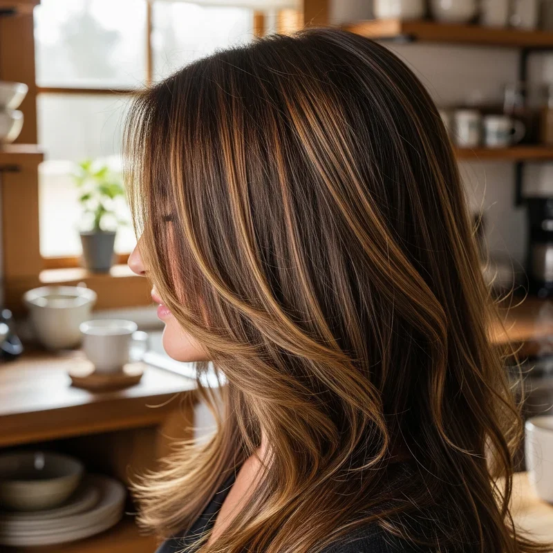 Who says brunettes can't have all the fun this fall? Rich chocolate brown with caramel ribbons creates the most delicious hair color combination you've ever seen. This multidimensional look adds warmth and movement to your hair, making it appear thicker and more luxurious. The contrast between the deep chocolate base and lighter caramel streaks mimics the play of autumn sunlight through trees. Your stylist can weave these ribbons throughout your hair using a balayage or highlighting technique, ensuring a natural blend that grows out beautifully. This color combo works wonderfully on medium to dark skin tones and brings out the warmth in brown or hazel eyes perfectly.