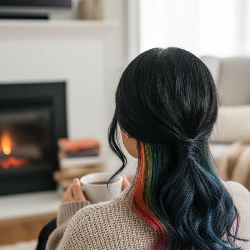 Ever wanted to keep rebellious sides under wraps during board meetings but unleash them at happy hour? Hidden rainbow hair is your perfect compromise between corporate appropriate and creative expression. This technique involves dyeing hair underlayers in vibrant multi colors while keeping top layers natural or conventional. When hair is down, you're all business—tie it up or flip it over, and you're a walking party. This works exceptionally well for conservative workplace people wanting colorful personality expression without risking professional reputation. The best part is controlling exactly how much color shows, perfect for days wanting to dial visual volume up or down. You get complete agency over self-expression, allowing navigation through different social contexts with ease while maintaining perfect balance between professional requirements and personal expression.