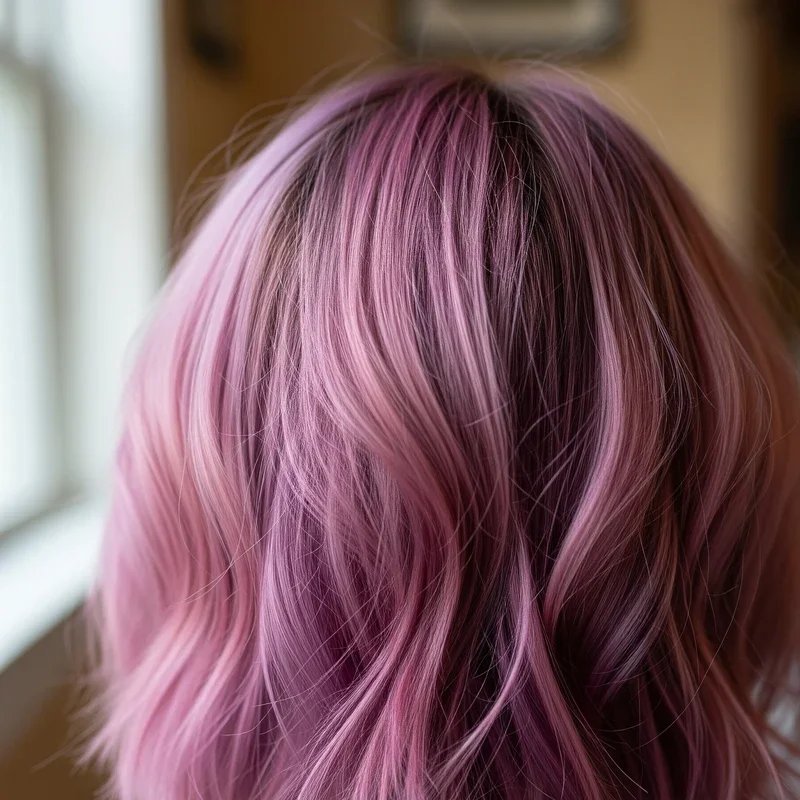 Shadow roots have revolutionized hair color maintenance, and combining them with soft pink lengths creates a look that's both trendy and practical for busy lifestyles. The purple shadow roots add depth at your scalp while seamlessly blending into the pink, creating natural-looking dimension that disguises new growth for weeks. This technique works especially well for natural brunettes who want to avoid frequent root touch-ups while still enjoying colorful hair. The purple at the roots prevents the harsh line that typically appears with pastel colors, allowing you to stretch appointments to every eight to ten weeks. The contrast between the deeper purple and soft pink also adds visual interest and prevents the flat appearance that can plague single-process colors. This style proves that low-maintenance and high-impact aren't mutually exclusive in the world of creative color.