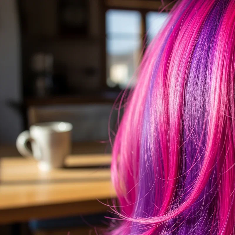 Remember that classic bubblegum flavor that made your childhood sweeter? This hair color captures that exact nostalgic vibe with a modern twist of purple undertones that add depth and complexity. The base color is a vibrant, playful pink that's bold enough to turn heads but balanced with subtle purple tones woven throughout to prevent it from looking flat or cartoon-like. This combination works best on pre-lightened hair to achieve maximum vibrancy and color payoff. The purple undertones become more visible in certain lighting, creating an almost holographic effect that changes as you move. To maintain this look's intensity, you'll need color-safe shampoo and weekly deep conditioning treatments since vibrant colors can be drying. Consider using a color-depositing mask between salon visits to keep the pink punchy and the purple undertones fresh.