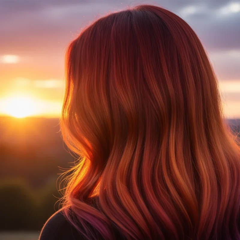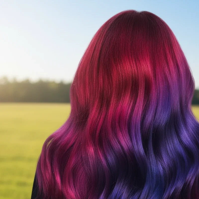The sunset gradient mimics nature's most beautiful light show by blending warm reds through oranges and pinks before settling into cool purples. This complex color story requires skill to execute but delivers absolutely breathtaking results that look different from every angle and in every light. Your colorist will use multiple transitional shades to create this seamless gradient that captures the essence of a sunset sky painted across your strands. The warmth of the reds near your face brightens your complexion while the purple tones add depth and intrigue to the overall style. This look works exceptionally well on longer hair where the full gradient can be displayed, though creative stylists can adapt it for shorter lengths by condensing the color transitions.